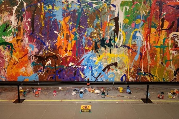 Уметничкото дело за кое зборуваме е со димензии 7м x 2,3м и е создадено како дело на американскиот графити уметник JonOne во 2016 година, во живо пред публика во трговскиот центар Lotte World Mall во Сеул. Пред уметничкото дело беа поставени четки и конзерви за боја, за да им се даде малку повеќе контекст на гледачите, а според персоналот на изложбата, маж и жена на дваесетина години земале четки и малку боја и решиле да станат дел од уметноста. Нивната работа е снимена од камерите за видео надзор, кои биле прегледани од полицијата пред двојката да биде обвинета за вандализам.