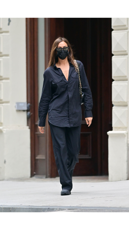 Се разбира, за Русинката, како и секогаш, големите црни очила се задолжителни, и поради пандемијата што сѐ уште трае, скоро секогаш ја гледаме Ирина како ги почитува превентивните мерки со носење заштитна маска.