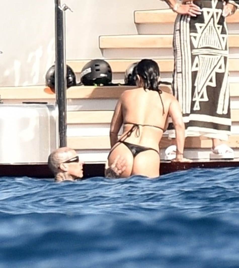 Тие биле забележани како се бакнуваат на брод, а ријалити ѕвездата цело време го гушкала тапанарот. Парот, кој легално се венча минатата недела, не се грижеше што нивните деца се околу нив бидејќи разменуваа нежности, што не им е прв пат.