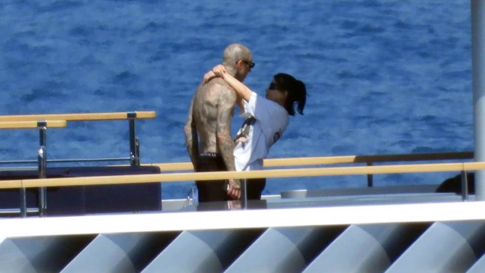 Тие биле забележани како се бакнуваат на брод, а ријалити ѕвездата цело време го гушкала тапанарот. Парот, кој легално се венча минатата недела, не се грижеше што нивните деца се околу нив бидејќи разменуваа нежности, што не им е прв пат.
