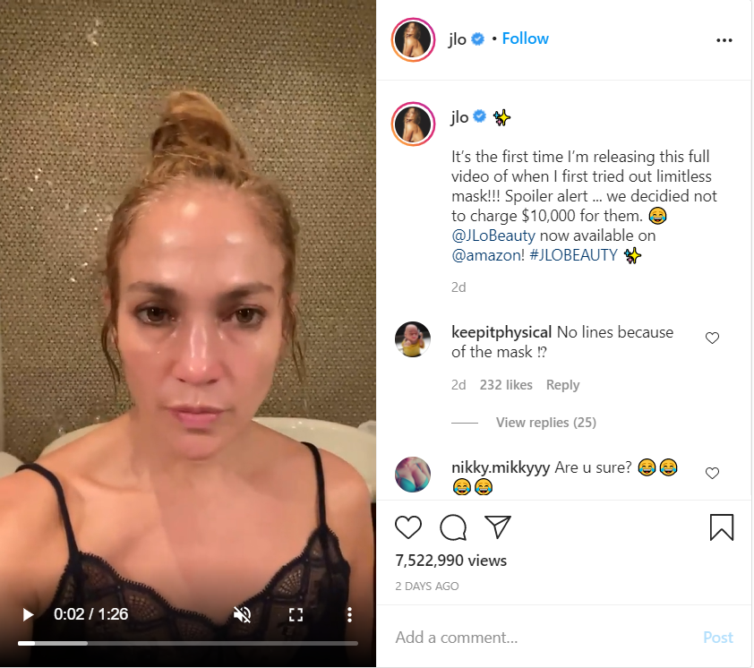 „Сега ми е преку глава“, започнала Инстаграм пренос во живо, 51-годишната латино дива Џенифер Лопез, која се налути откако еден следбеник и напишал под фотографијата што ја објавила на гореспоменатата социјална мрежа: „Сите сте од ботокс. Лесно е да изгледате така кога вашата клиника за естетска хирургија е вашиот втор дом. Вашите веѓи и чело воопшто не се движат кога зборувате или се обидувате да искажете израз … дефинитивно имате ботокс. Еден тон ботокс. И се е во ред, само велам“.