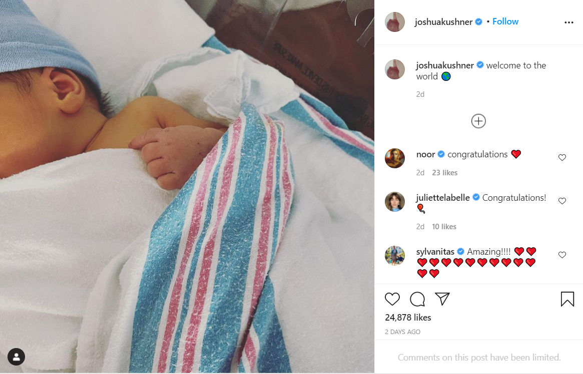 Честитки, честитки, бидејќи Карли Клос и нејзиниот сопруг Џошуа Кушнер го дочекаа своето прво бебе. Кушнер ја сподели среќната вест на Инстаграм објавувајќи симпатична фотографија од нивното бебе, заедно со натписот „Welcome to the world.“.