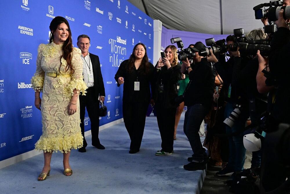 Сите очи беа вперени во Лана Дел Реј кога се појави на доделувањето на музичките награди “Billboard Woman in Music 2023“. За таа прилика таа облече жолт миди фустан со долги ракави, со ремен во иста боја и соодветни златни салонки.