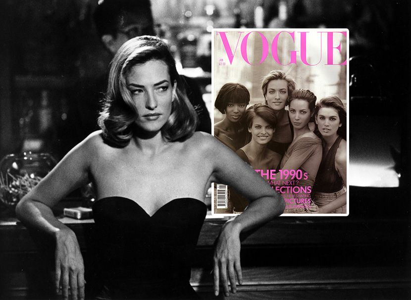 Оваа насловна страница на Vogue од 1990 година стана една од најпознатите модни слики на сите времиња и беше вклучена во првите десет насловни страници на британскиот Vogue на Едвард Енинфул на сите времиња.