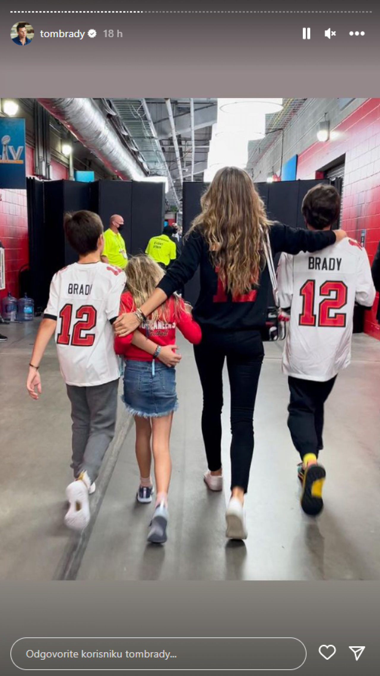 А Брејди и се заблагодари објавувајќи фотографија од неа со децата на својата приказна на Инстаграм. Се потсети и на својата прва животна сопатничка Бриџит Мојнахан со која го добија синот Џон Едвард Томас Мојнахан.