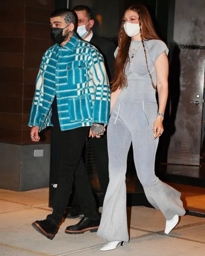 За да го прослави својот роденден, Џиџи Хадид избра хипи изглед. Манекенката носела едноделен плетен комбинезон со кратки ракави во сива боја со sвонарки. Стајлингот го заврши со бели чевли.