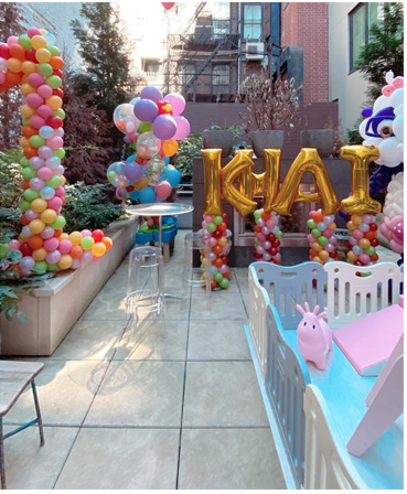 „Моето бебе наполни една година овој викенд“- напиша мајката покрај сликата на која се гледа дека терасата на нејзиниот стан е украсена со балони, вклучувајќи ја и џиновката Лулу од пандата.