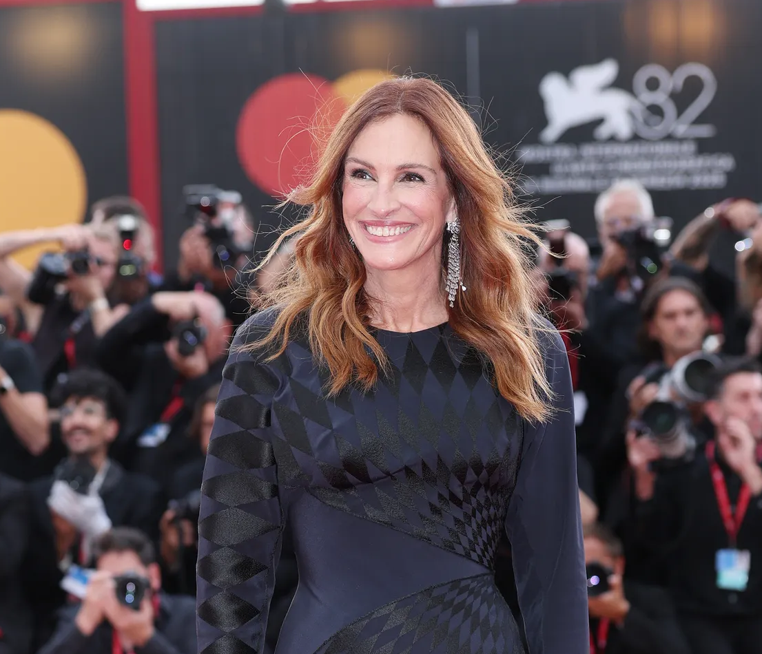 Венеција – Џулија Робертс го имаше своето деби на црвениот тепих на Венецискиот филмски фестивал со стил. Ветеранката актерка, која има голем број блокбастери зад себе, се појави во Лидо за прв пат во својата кариера, додека работи на промоција на својот најнов претстоен проект. Режисер на Италијанецот Лука Гвадањино, а во кој глумат и Ајо Едебири и Ендру Гарфилд. „The Hunt“, е најновиот филм на ѕвездата кој премиерно ќе се прикаже вечерва на Венецискиот филмски фестивал. За посебна пригода како оваа е потребна монументална мода, а Џулија не разочара. Актерката избра асиметричен црн фустан од Версаче со дијамантски дезен и прицврстување околу половината.Фустанот, кој има долги ракави и здолниште до подот, зрачи со стар холивудски гламур.