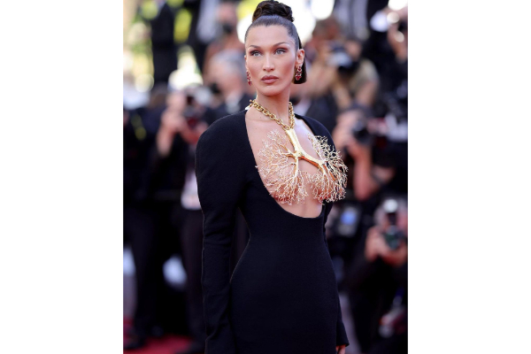 Сепак, апсолутна кралица на бестрашните модни појави, и на црвениот тепих и надвор од него, секако е Бела Хадид. Да се ​​потсетиме само на последната изјава за стилскиот момент на супермоделот, кога таа се појави на Канскиот филмски фестивал во неверојатен фустан од високата мода од Скиапарели.