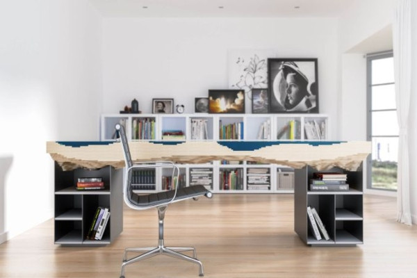 Сепак, за разлика од Abyss масата, основата на овој океанско инспирирана маса се состои од два цврсти блока од двете страни. Секој блок доби оддвоен простор за складирање, кој ќе ви помогне да ги организирате вашите канцелариски материјали. Abyss работната маса е рачно изработен и нуди екслузивна можност за нарачка во Лондон.