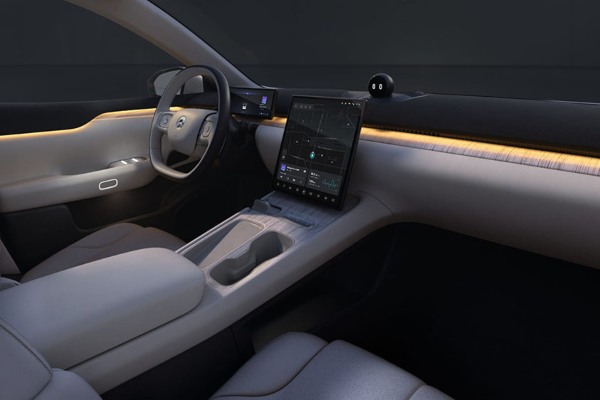 Пространата кабина за патници е создадена од самоодржливи материјали и е многу повоздржана од оние на моделите Model S или Porsche Taycan. Контролната табла има дискретни дигитални мерачи лоцирани зад воланот и голем екран на системот за инфо-забава од 12,8 инчи, монтиран на централната конзола.