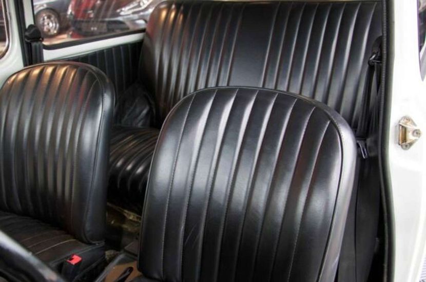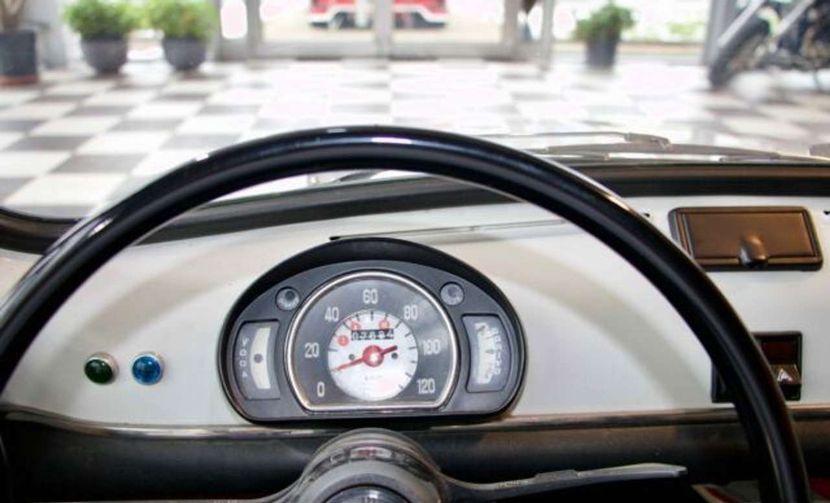Внатрешноста на автомобилот изгледа како да излегла од производната линија вчера, што, без сомнение, некој вистински љубител на олдтајмери или класични мали (италијански или источноевропски) автомобили ќе може да ги цени.