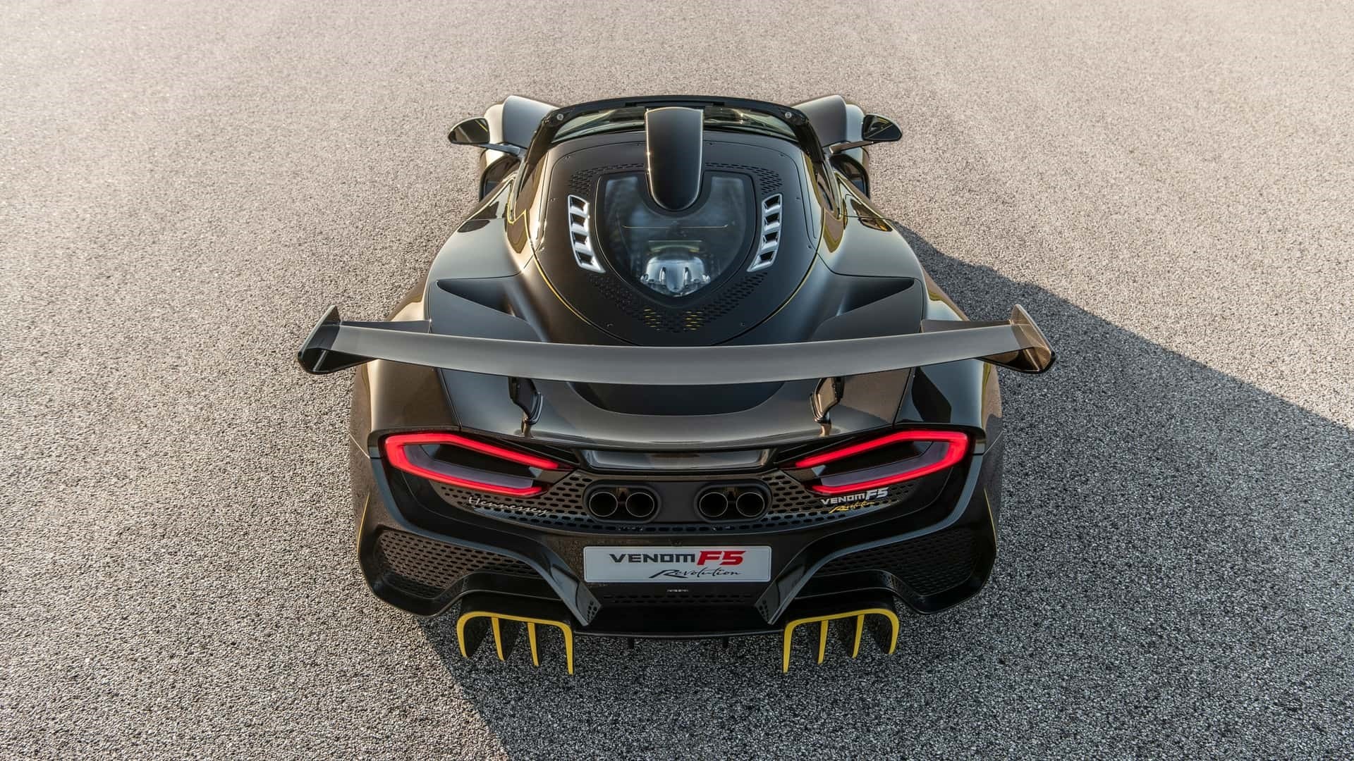 И сега тие одлучија да понудат роудстер верзија на овој автомобил способна за брзина до 500 km/h. Ќе се произведуваат само 12 примероци од моделот Venom F5 Revolution Roadster, а тоа е автомобил кој не се плаши од свиоци. Напротив, тој е создаден за да соборува рекорди токму на патеката, додека трките за забрзување и рамните патишта не се неговиот фокус.Најголема иновација е покривот, кој е изработен од композит со карбонски влакна, обложен со алкантара од внатрешната страна. Тежи само осум килограми, а се вели дека лесно се отстранува со само неколку потези. Во исто време, мора да го оставите во гаражата бидејќи во автомобилот нема одредено место.