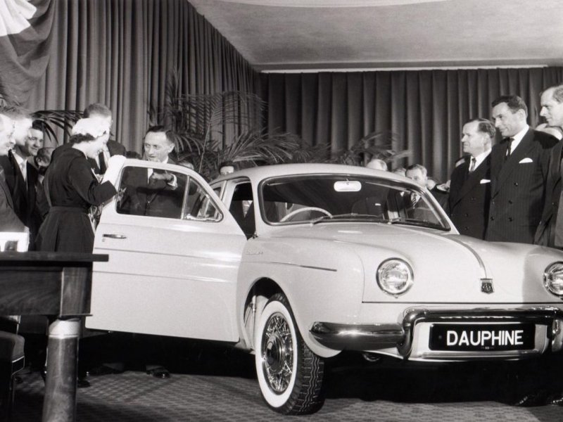 Можеби контроверзно, кралицата доби Renault Dauphine од британско производство, кое и го подари претседателот на компанијата Пјер Драјфус. Иако таа го доби автомобилот, пастелно сино примерок со бели гуми и кожен ентериер, за време на нејзината обиколка на главната француска фабрика на Рено во Флин во 1957 година, автомобилот беше склопен во Актон, западен Лондон – 10 работници на Актон беа присутни на предавањето. а таа самата фабрика датира од 1926 година.