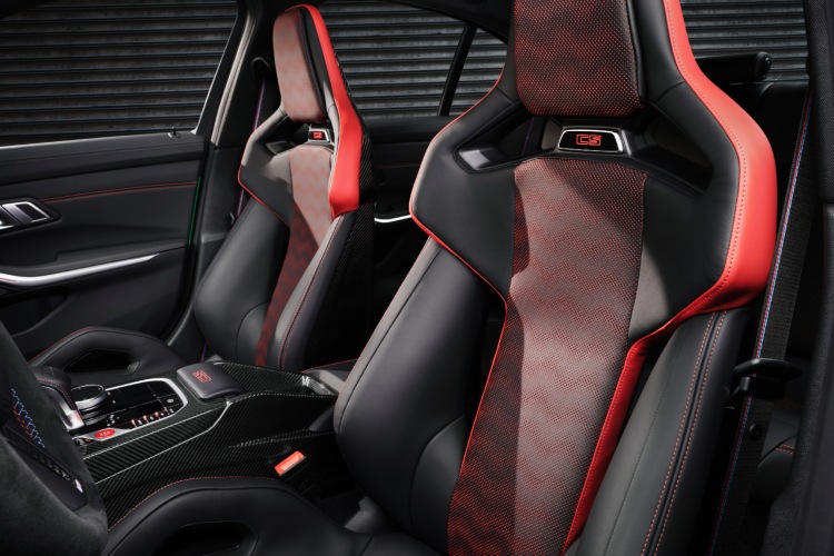 Кога станува збор за внатрешноста, можете да очекувате спортски седишта со обвивка од јаглеродни влакна, Мерино кожа со црвени акценти на Mugello, прагови на вратите со ознака „M3 CS“ и волан обвиткан со Алкантара.