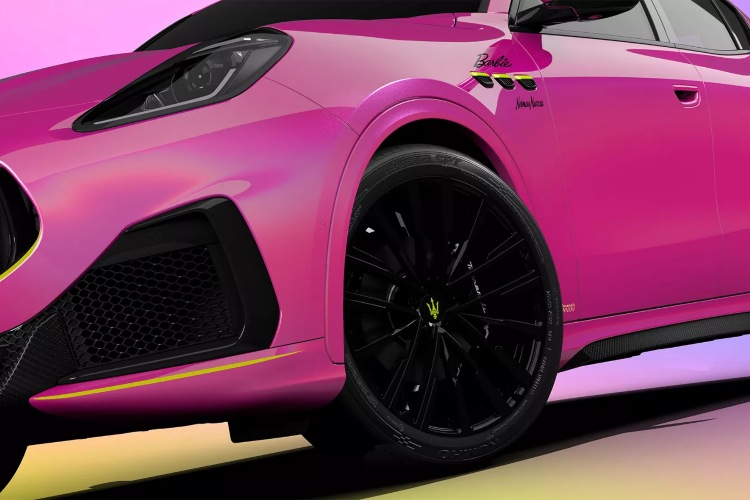 Оваа смела Fuoriserie Maserati Grecale е верзија на Trofeo која пулсира со чист адреналин благодарение на моќниот V6 Nettuno мотор од 530 КС. Во вистински стил на Barbie, изразот на нејзината иконска розова нијанса го покрива речиси секој сантиметар од автомобилот, а има суптилни неонски жолти линии, инспирирани од тркачкото наследство на Trident. Надворешноста е украсена со логото на Barbie и е завршена со прелив кој открива неверојатен ефект на виножито во убав сончев ден.