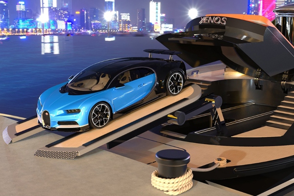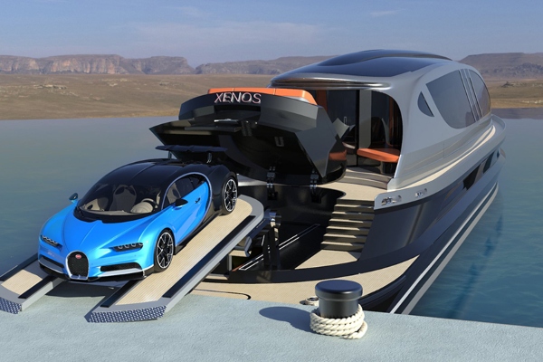 Xenos е амбициозен дизајн на нова јахта, која според неговиот креатор би можела да достигне брзина од 90 јазли, што ја прави најбрзата опција со должина до 130 стапки. Xenos е дело на италијански дизајнер, Пјерпаоло Лазарини од студиото Лазарини Дизајн, кое може да се претпостави само до одреден степен засновано на естетика, а брзината е само еден дел од нејзината привлечност. Хипер-јахтата е снабдена со суперавтомобил Бугати, со цена од 32,8 милиони долари.