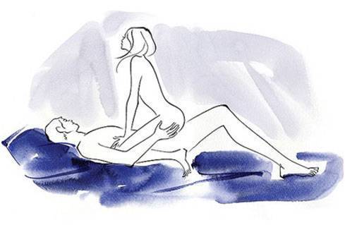 Слично на популарната “cowgril” поза, клекнете врз него, нежно допирајте ги неговите гради, лизгајќи се нагоре и надолу по неговите бедра.Тој нека ве придржува...
