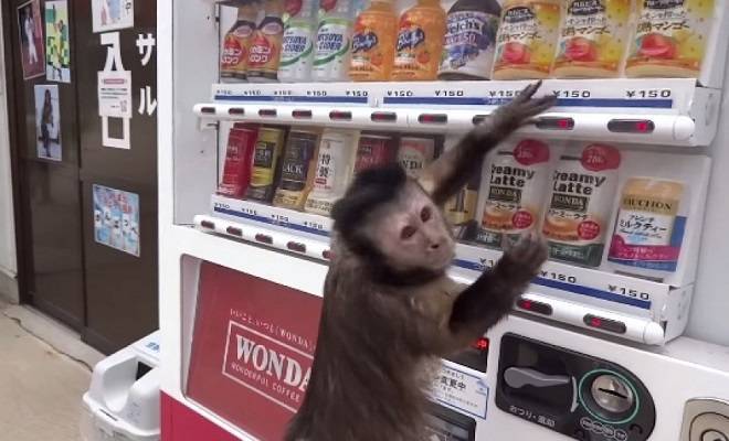 Препаметното животно точно знае каде и како треба да ги внесе парите за да го нарача посакуваниот пијалок. Дека мајмуните се меѓу најинтелегентните суштества...