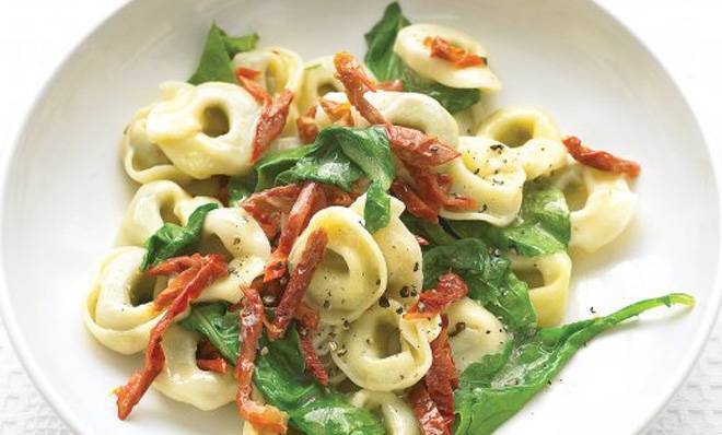 Време на подготовка: 35 минути / ќе послужите: 4 2 пакувања тортелини со говетско месо ½ шолја сушени патлиџани, тенко сецкани 350 грама рукола,...