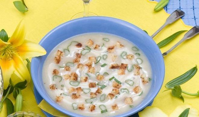 Состојки: -250 гр. компир -150 гр. млад лук -8 дл. пилешка супа -30 гр. путер -5 лажици масло – 3 дл. јогурт -2 лажици...