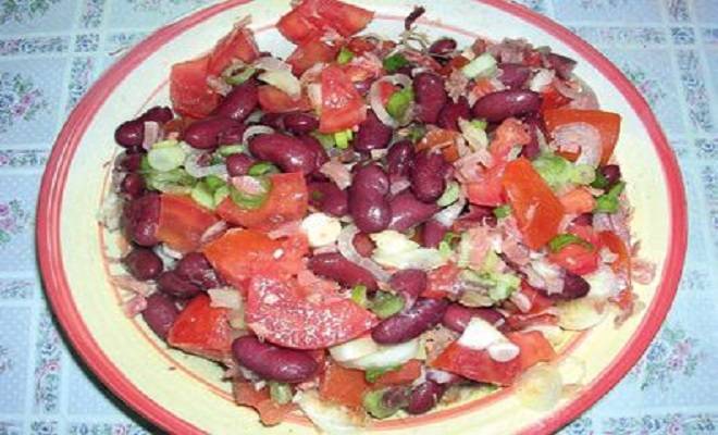 Состојки: -400 гр. црвен грав од конзерва -200 гр. говетска или свинска пршута -400-500 гр. зрел домат -две главици стар кромид или 4-5 млади...