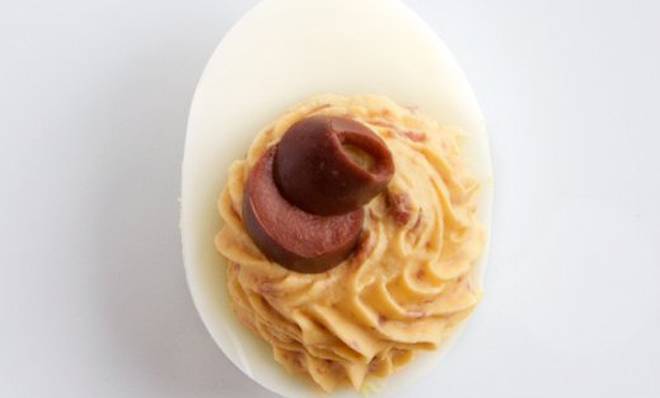 Време на подготовка: 30 минути / ќе послужите: 4 8 големи јајца 75 грама мајноз 1 лажичка сенф 1 лажичка виснки оцет 3 лажички...