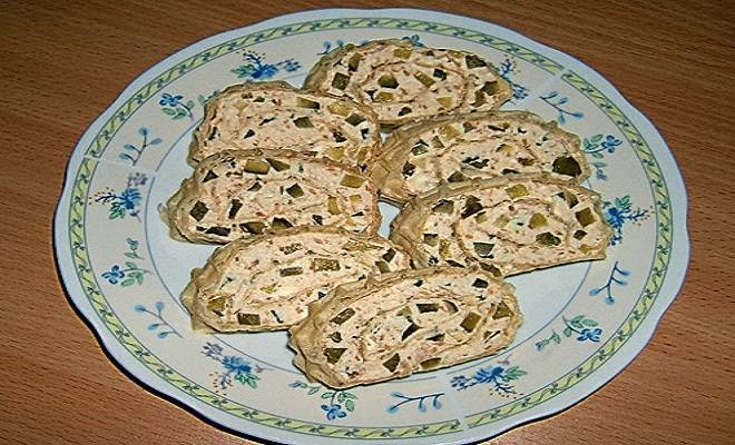 Состојки: -обланда -1 конзерва туна -3 кисели краставички -2 лажици сусам -100 гр. маргарин -мешан зачин Подготовка: 1. Обландата завиткајте ја во влажна крпа...