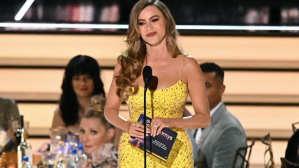 Врвливата колумбиска актерка беше домаќин на доделувањето на наградите Еми во 2022 година додека го украде шоуто во блескав фустан со светки.Софија Вергара можеби...