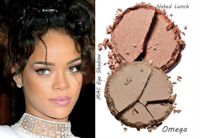 Шминката на Rihannina на оваа фотографија е сјаен пример за тоа. Овде е измешана бојата на кожа со металик розева сенка, додадени се неколку слоеви на маскара и eyeliner и е постигнат посакуваниот мачкаст ефект. Слузокожата на окото е исцртана со црн eyeliner околу и ги истакнува зелените очи и ги прави како да се прозрачни.