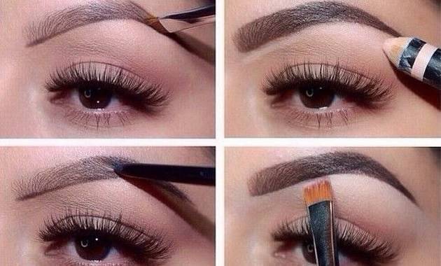 3. Не заборавајте дека исцртувањето е важно. Користете моливче или закривена четка и сенка. Нијансата може да биде малку посветла од веѓите, но никако потемна. Задолжително истакнете го лакот под веѓата со светол коректор или сенка.