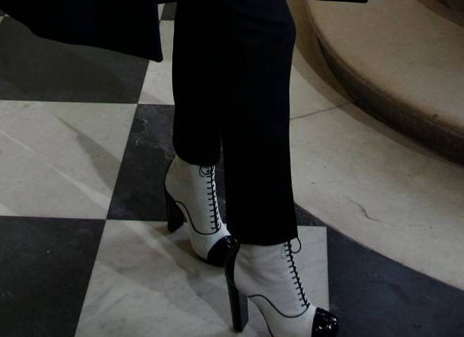 Сепак, посебен француски шарм на ова комбинација дадоа шик белите чизми кои Џесика ги носи со плик бела чанта на Dior. Дополнителни детали за конечниот потпис на Dior се златните обетки.